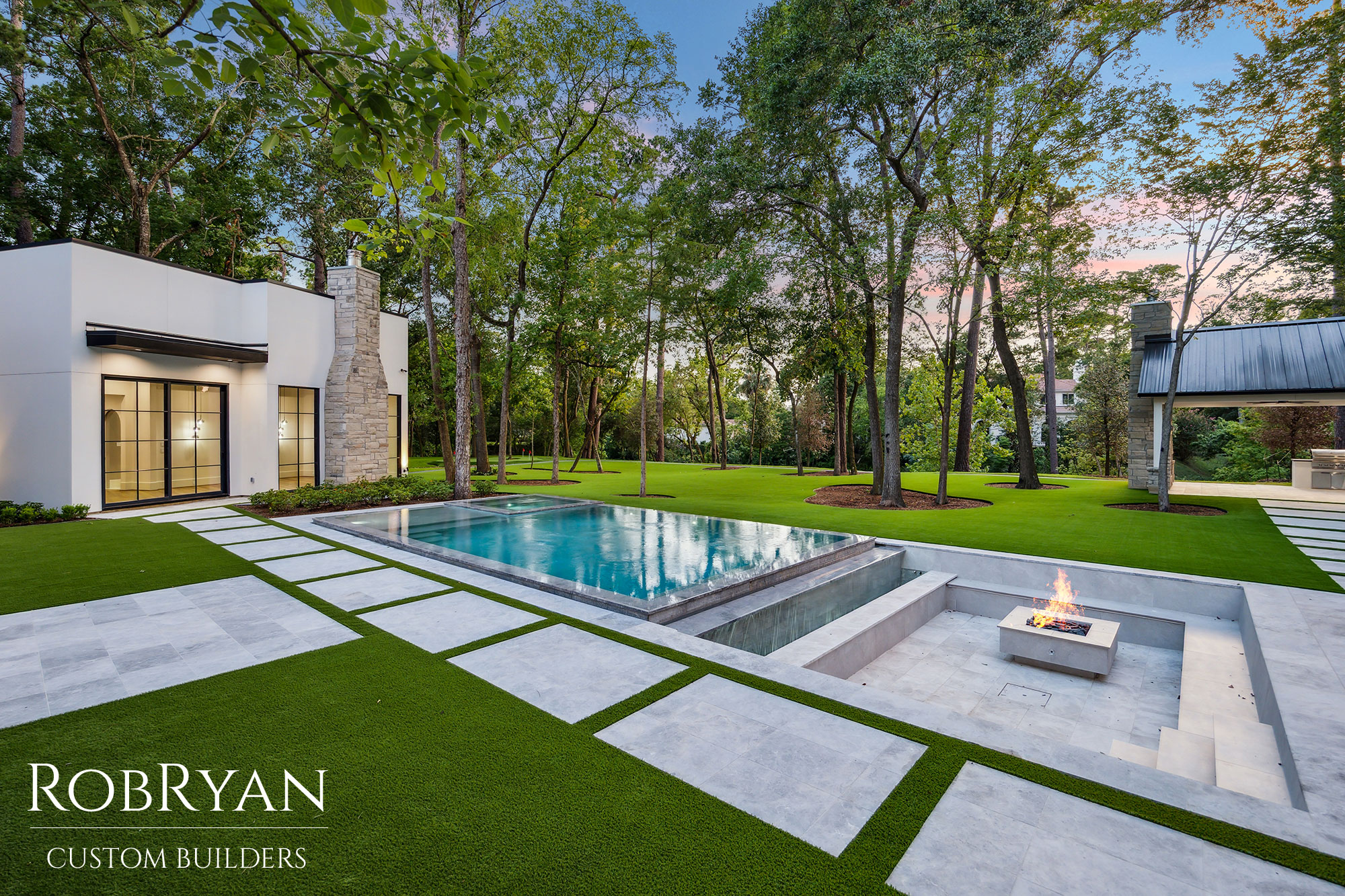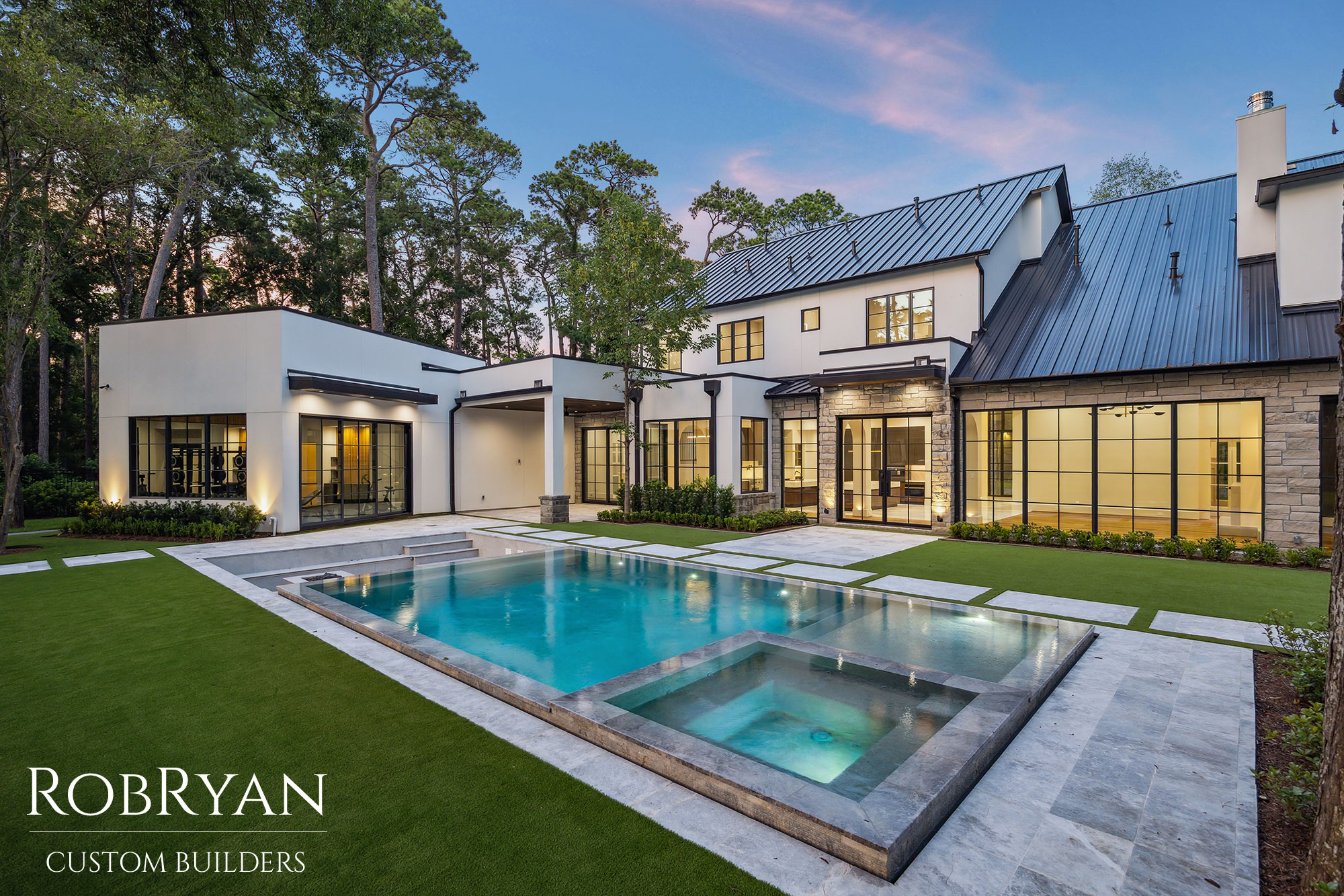 Every detail—from the black metal rooflines to the expansive glass walls—reflects RobRyan’s commitment to precision, beauty, and elevated living.